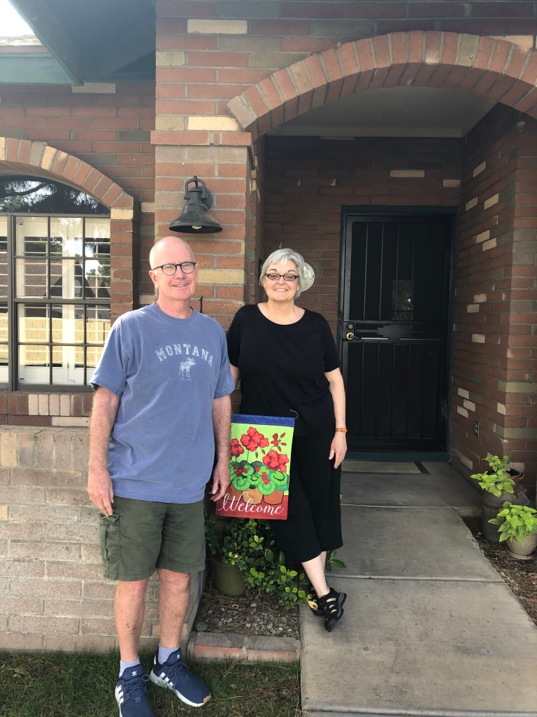 Here’s a picture of my husband Mike and me at home.